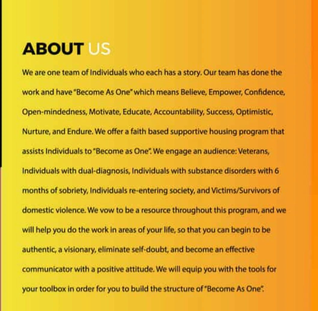 “Helping Individuals Rebuild, Renew, and ‘Become As One"
